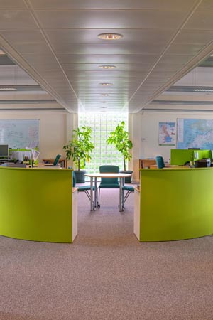 Around 100 different colours, patterns and sizes are available. We can construct complete walls, or small feature panels. The system can be used in numerous ways such as forming dividing walls, shower screens, feature panels or complete office façades.